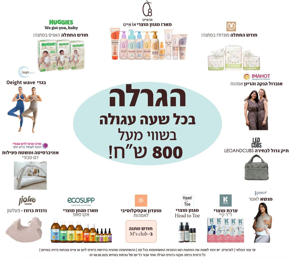 תיק מתנות מפנק עם מוצרים לבייבי וגם לך! ביחד שווי התיק מעל 170 ₪! ועלות הכרטיס- פחות מכניסה לג׳ימבורי!